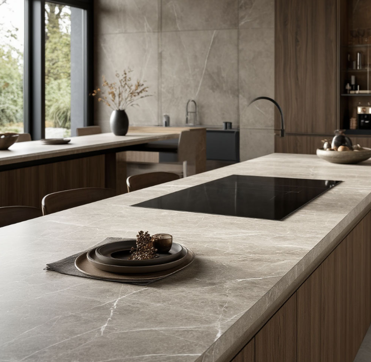 И здесь на сцену выходит керамогранит. Когда-то его использовали преимущественно для облицовки полов и стен, но сегодня он уверенно завоёвывает позиции в сегменте премиальных кухонных решений. Почему? Разберёмся подробно.