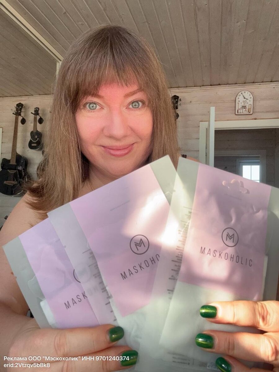 Мариночка, вы очень хорошо выглядите! — вчера мне комплимент прилетел от подписчицы! Очень приятно.🤗 Скажу честно, у меня времени на уход за своей физиономией особо нет. Это плохо и никак не может служить примером. Но, что я делаю в обязательном порядке — использую тканевые маски после ванны. 15 минут и побежали. Тут вы можете видеть меня «в полной красе» — красное лицо, сосуды, поры, шелушение — всё, на месте. Ну и последняя фотка — это уже результат абсолютно без макияжа (с бровями). Обычно, я крашусь редко. Мазну нос для визуального сужения и области по обе стороны от него — на фото с маской мой «финальный» вид. Конкретно результат на фото показываю после использования масок корейского производства — MASKOHOLIC. Это тканевая маска для лица с AHA-, BHA-, PHA- кислотами для сияния кожи. Эффект мне очень понравился: ушла моя ярко-выраженная краснота, шелушения нет, кожа действительно напитана влагой и имеет живой цвет. Отёчность уменьшилась. Кстати, тональник ложится лучше после