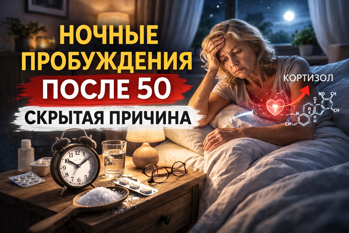 Многие после 50 лет начинают просыпаться ночью. В 2:30. В 3:40. В 4:15. Иногда — просто открываются глаза без причины. Иногда — с тревогой, сердцебиением или ощущением, что «сон ушёл». Чаще всего это списывают на возраст. Но правда в том, что ночные пробуждения — это не возраст, а сигнал о сбое в регуляции организма. И причина почти всегда глубже, чем кажется. С возрастом: Но сам по себе возраст не обязан будить человека каждую ночь.