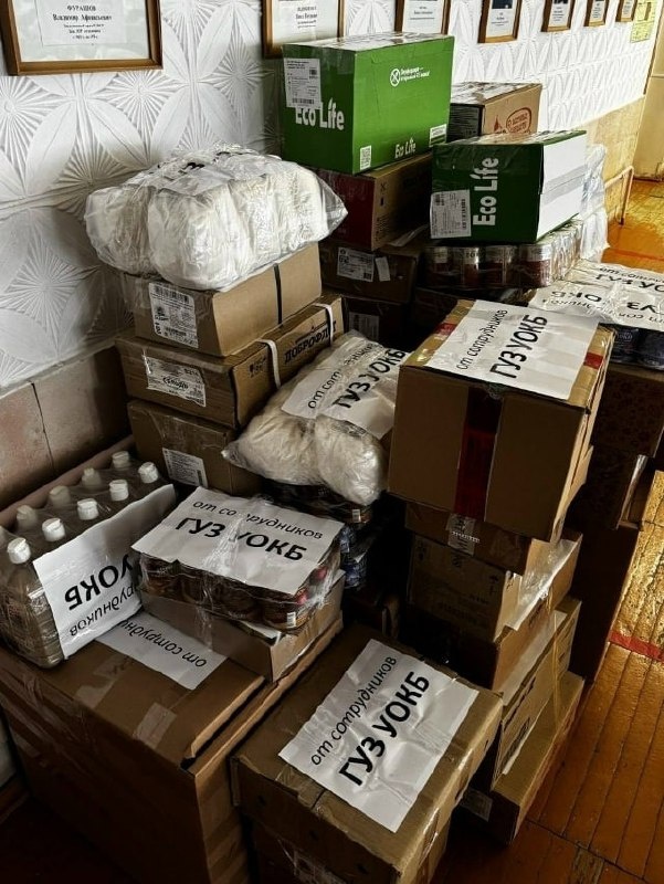 Сотрудники Ульяновской областной больницы закупили лекарства, продукты и средства гигиены на сумму 167 тысяч рублей. коробки с гуманитарной помощью уже направлены в администрацию Железнодорожного района и скоро будут доставлены в зону СВО. Фото: Минздрав Ульяновской области Оперативные новости в МАХ