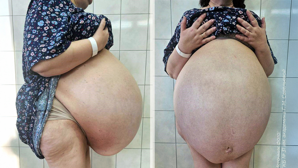 В Центр женского здоровья ГКБ №31 им. академика Г.М. Савельевой обратилась женщина, которую беспокоило увеличение веса. Индекс массы тела пациентки был настолько высоким, что обследование не позволяло определить происхождение кисты. Женщине требовалась операция. Во время операции было выявлено, что женщину беспокоила киста правой доли печени, которая достигала размеров 60×40 см и объема около 40 литров. Кистозное образование занимало практически всю брюшную полость, сдавливало внутренние органы и мешало их нормальному функционированию. Врачи аккуратно удалили кистозное образование, операция прошла без осложнений. В результате масса тела пациентки снизилась с 181 кг до 150 кг. Сейчас женщина выписана и продолжает восстановление амбулаторно под наблюдением врачей. Источник информации: Департамент здравоохранения города Москвы