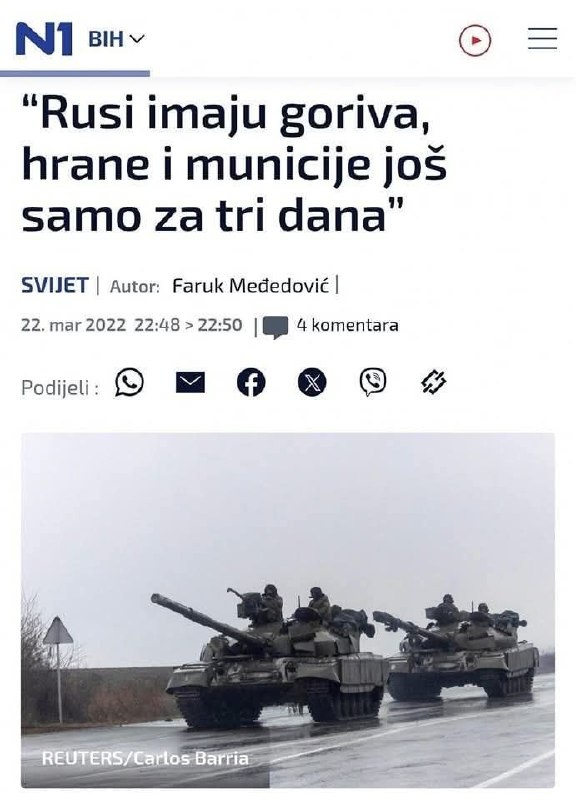 И пока ВС РФ идут вперед, а сербы по-прежнему активно поддерживают Россию, как тут не вспомнить балканские прозападные СМИ, которые финансируются Западом Первые месяцы СВО местные прозападные и либеральные СМИ то и дело повторяли, как мантру, западные тезисы: «У русских осталось топлива, еды и боеприпасов на 3 дня»... Как правильно отмечают сербы в комментариях: 4 года прошли, а 3 дня - еще нет. Сегодня, напомню, в Белграде состоится протест поддержки России. Данный митинг - ответ на митинг украинского посольства в Белграде, их «беженцев», российских релокантов и сербских либералов, сидящих на зарплате у западных посольств и НКО. Удивительно, что их митинг «совпал» с назначением нового украинского посла. #Сербия #Белград #Россия @vestniksrb — главное о Сербии и Балканах