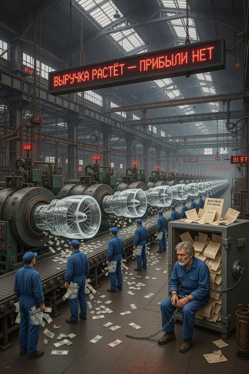 Ирония в том, что завод работает на пределе, гоняет двигатели для фронта и гражданской авиации, но при этом уходит в минус. Потому что производство в нынешних условиях — это не про деньги, а про выполнение задачи. Деньги придут потом. Или не придут.