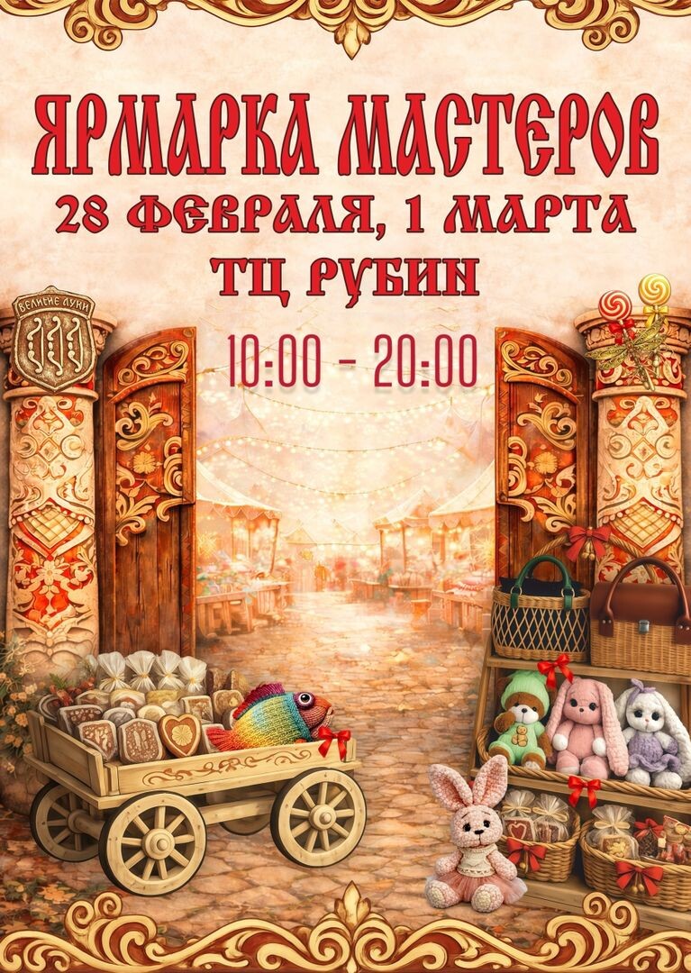 🎨 Отдел по туризму Комитета культуры Великих Луки приглашает на ярмарку мастеров декоративно-прикладного творчества. 📅 Мероприятие пройдёт 28 февраля и 1 марта в Торговом Центре «Рубин». ✨ Посетители увидят украшения, предметы интерьера, игрушки, изделия из керамики, дерева, текстиля, мыло, свечи, открытки и сувениры. 👉ВЛуки.ру