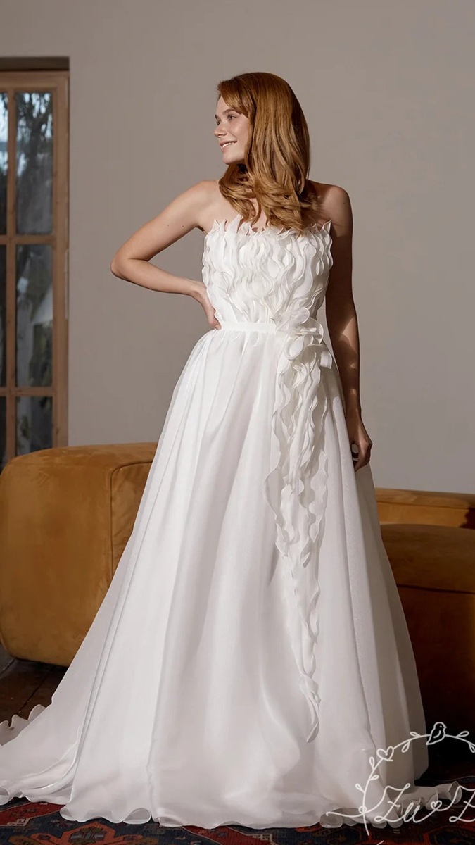 Это платье для невесты, которая мечтает о королевской пышности и нежной романтике. Каждая деталь здесь дышит торжественностью и лёгкостью одновременно. ✨ Почему оно особенное: • Корсет с объёмной волной, стремящейся вверх — словно движение ветра, несущего счастье • Открытые плечи — подчёркивают хрупкость и женственность • Пышная фатиновая юбка с небольшим шлейфом — тот самый сказочный силуэт, от которого захватывает дух 💫 Почувствуйте себя принцессой! Платье доступно в шоуруме в 42 размере. Также возможен индивидуальный пошив по вашим меркам. #свадебноеплатье #невеста2026 #платьелалия #фатин #пышноеплатье #корсет #шлейф #сказочныйобраз #принцесса #индивидуальныйпошив