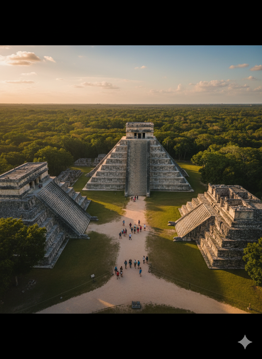 - Сколько времени нужно на осмотр Чичен-Ицы? Закладывайте не менее 3–4 часов на сам комплекс плюс дорогу — из Канкуна это целый день.