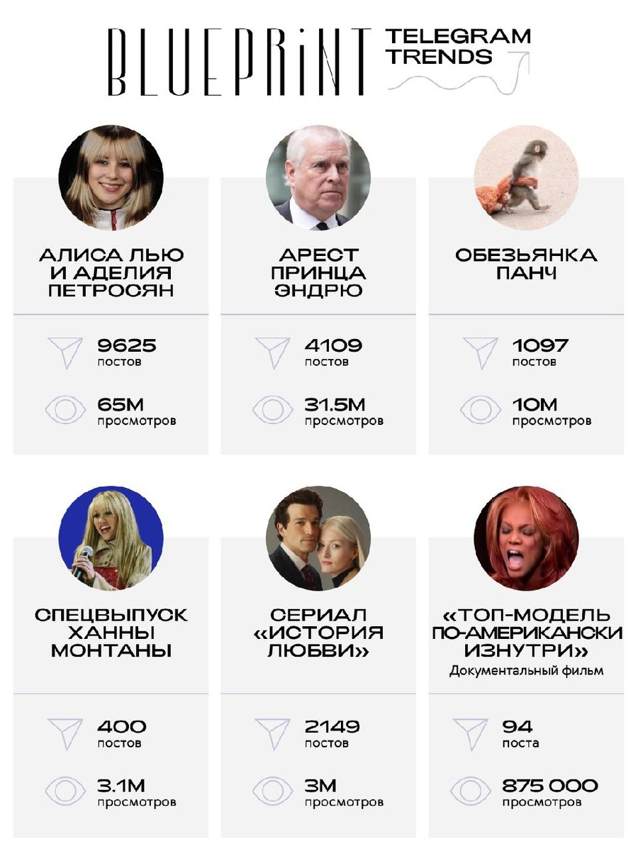 📌 Февраль для эмпатов проходит тяжело: не успели все забыть пингвина-нигилиста, идущего на верную смерть, как появился новый герой соцсетей — отвергнутая матерью обезьянка Панч из японского зоопарка, нашедшая себе друга в лице плюшевого орангутана. Пока все роняли слезы над Панчем, модная сторона телеграма — шутила и негодовала из-за новых подробностей легендарного шоу Тайры Бэнкс. Все дело в трехсерийном документальном фильме Netflix «Проверка на практике: Топ-модель по-американски изнутри», которое смотрят (и обсуждают) до сих пор. Во вторник фанаты «Ханны Монтаны» проснулись чуть счастливее: главная героиня, поп-звезда Майли Сайрус, решила помпезно отметить 20-летие культового шоу и анонсировала юбилейный выпуск, который выйдет уже 24 марта. Ждем и танцуем под любимые с детства треки. В четверг мы болели за Аделию Петросян, главную звезду женского фигурного катания в России последних лет — а уже в пятницу стало известно, что она заняла шестое место в одиночном катании. Золотую