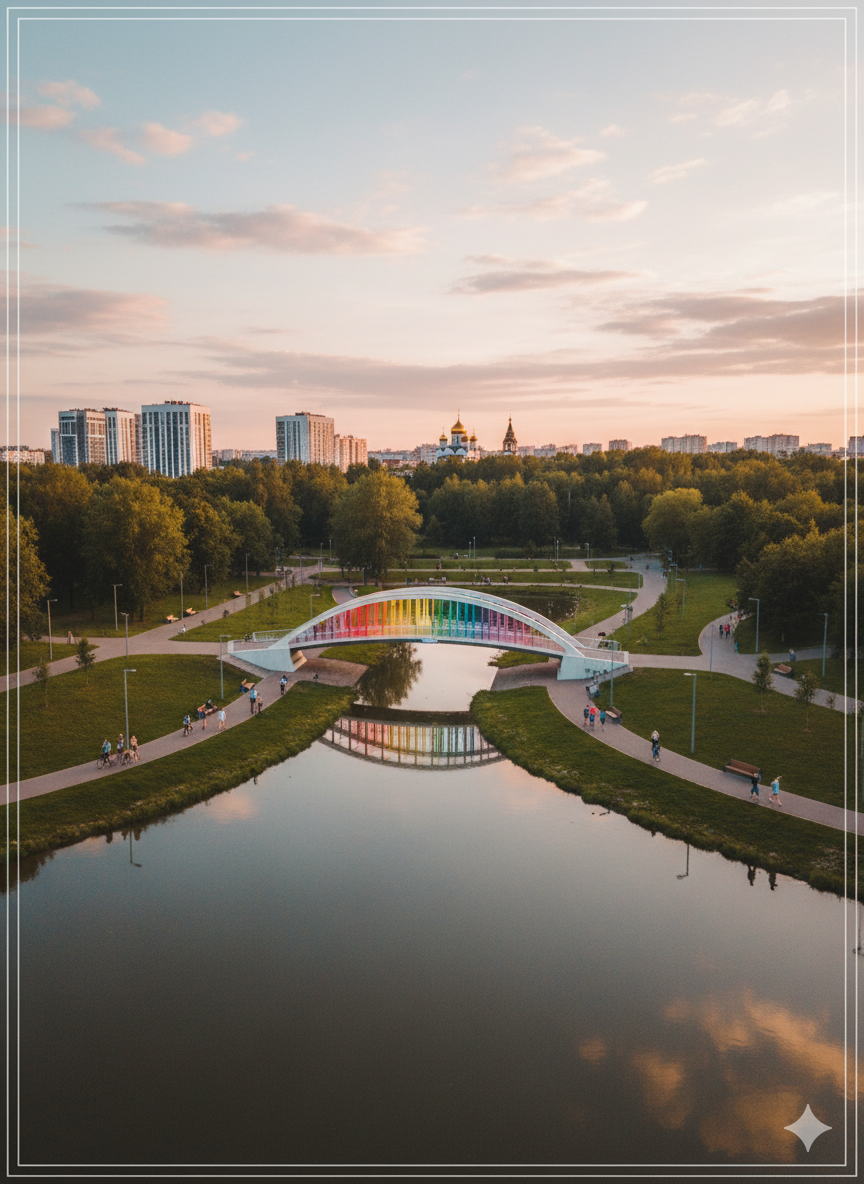 Главный парк Мытищ раскинулся вдоль живописной набережной реки Яузы и стал любимым местом отдыха как местных жителей, так и гостей города. Уютные аллеи, поющий фонтан, детские площадки и кафе создают атмосферу настоящего городского праздника.