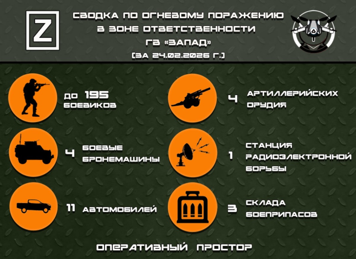 Сводка по огневому поражению в зоне ответственности ГВ «Запад» за 24.02.2026 г