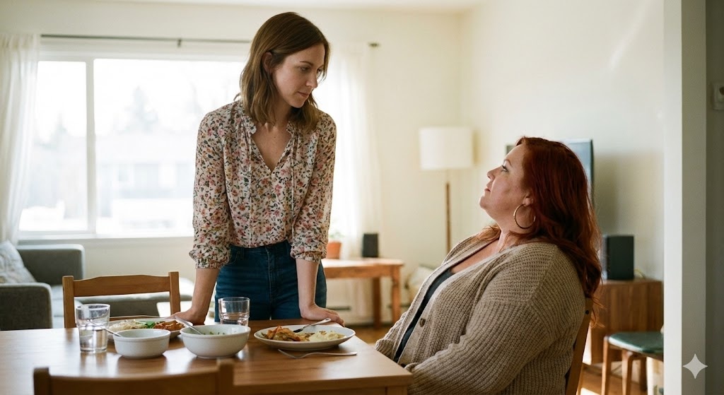 Диана сидела во главе стола. Не спрашивая, не предлагая — просто села на место хозяйки. Ксения заметила. Промолчала. Опять.