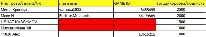 Ждем до завтра данные еще двух игроков и отправляем в Лесту, не зависимо будут предоставлены данные или нет...