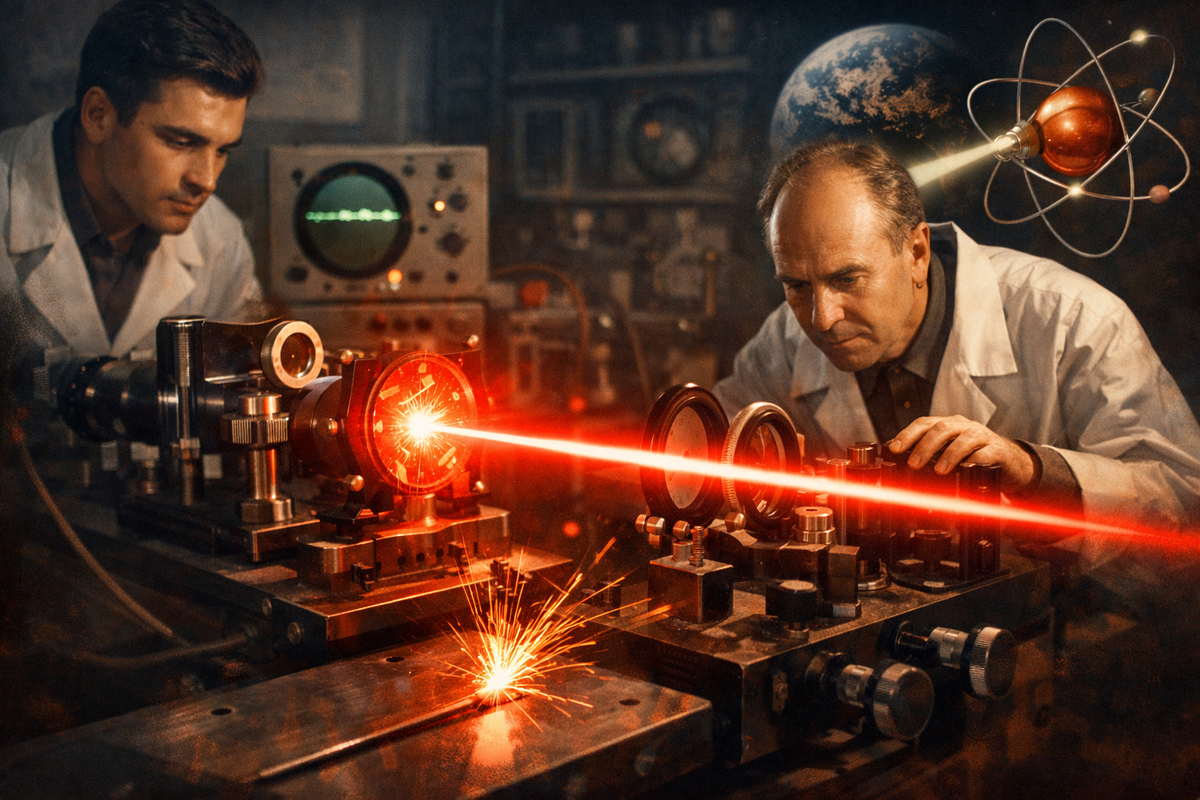 Представьте: вы держите в руке карманный фонарик. Луч рассеивается, слабеет, расплывается в пятно уже через несколько метров. А теперь представьте другой свет — такой, который летит миллионы километров, не теряя ни миллиметра точности, режет сталь, лечит сетчатку глаза, читает штрихкод на упаковке печенья и передаёт терабайты данных за долю секунды. Это не магия. Это лазер. И история его рождения — одна из самых захватывающих детективных историй в науке XX века.