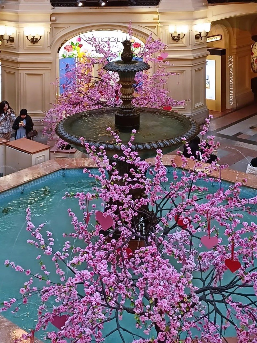 🔵Розовая сакура поднимает настроение посетителям и напоминает, что до весны остались считанные дни. 📸 elena.moscow2026 Московские истории 🎞️ Лучшие места и истории 👈🏻