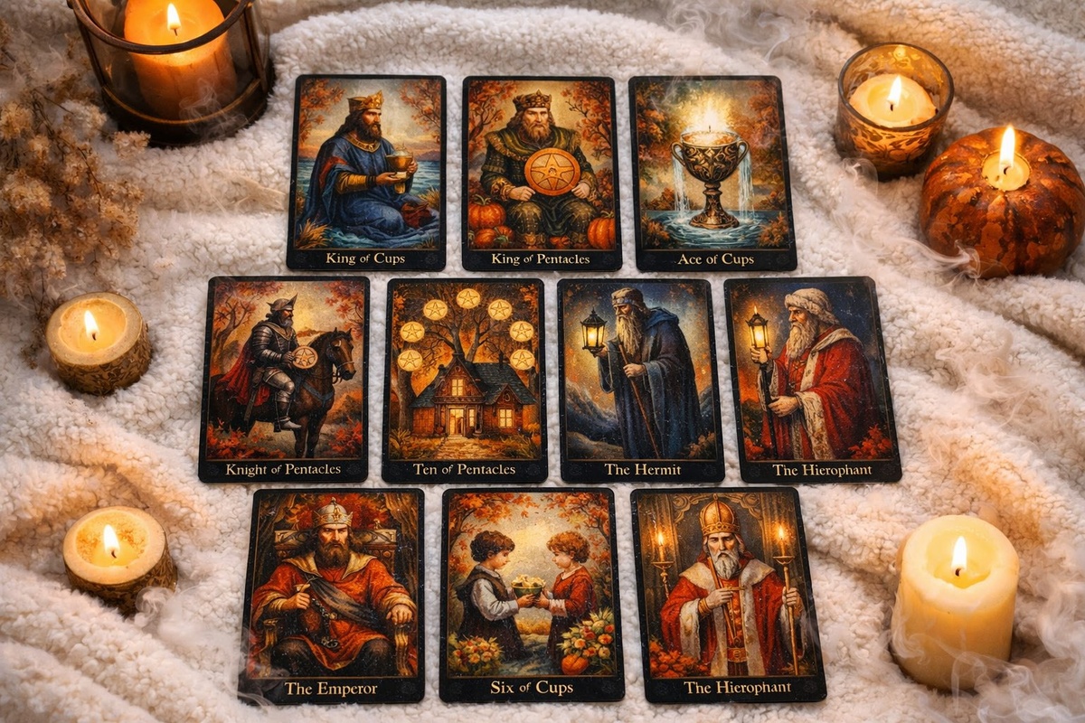 Здесь сценарий типичного сериала: вы мечтаете о фейерверках на десятом свидании, а по факту он медленно, но верно выкатывает свою кандидатуру на арену жизни. Его тактика не ураган страсти, а домашняя нежность, когда проявления идут через дело и присутствие. Может подвезти на работу, помочь с тяжёлой сумкой, зарядить ваш телефон (и даже сердце). Рыцарь пентаклей работает тихо и последовательно. Мудрый глазом светит: если не сегодня — значит завтра, если не завтра — значит, в ближайшее удачное стечение обстоятельств . 10 пентаклей говорит о том, что возможен контакт через семью, родственников, общих друзей, или в атмосфере, где свой среди своих. Скорее всего, он уже давно рядом, где-то в тени, между незамеченными, и ждёт, когда в вашем мире освободится место для кого-то по-настоящему надёжного. Отшельник его стратегия "чуть чуть подождать и накопить эмоций". Он сначала себя подготовит, а потом выйдет навстречу, когда внутри созреет ответ “ДА”. Вам нужно лишь немного терпения и умения заметить чуть больше в мелочах. Его путь не рывок с флагом наперевес, а глубокая, выверенная экспедиция по замысловатым коридорам вашей души.