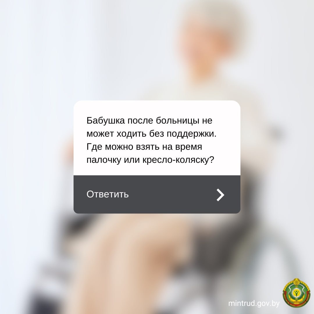 ? Бабушка после больницы не может ходить без поддержки, или папе стало трудно передвигаться по квартире? Часто необходимость в палочке, ходунках или инвалидной коляске возникает внезапно. И покупать дорогое оборудование сразу, не зная, подойдет ли оно и сколько прослужит — страшно и накладно. 💡В Беларуси можно получить средства реабилитации временно и бесплатно. 1️⃣ Сначала, советуем обращаться в ваш территориальный центр социального обслуживания населения (ТЦСОН). Они есть в каждом районе . 2️⃣ Что можно взять для ухода: ✅Кресла-коляски (разных модификаций); ✅Ходунки и опорные трости, костыли; ✅Сиденья для ванны и др. 3️⃣ Возьмите с собой: паспорт и медицинскую справку (или заключение ВКК), подтверждающую, что средство действительно нужно. Для инвалидов — индивидуальную программу реабилитации. 4️⃣ Написать заявление и заключить договор. Всё! Средства выдадут во временное пользование . ➖➖➖➖➖ 📍 Узнать адрес своего ТЦСОН можно на сайте Министерства труда и социальной защиты или п