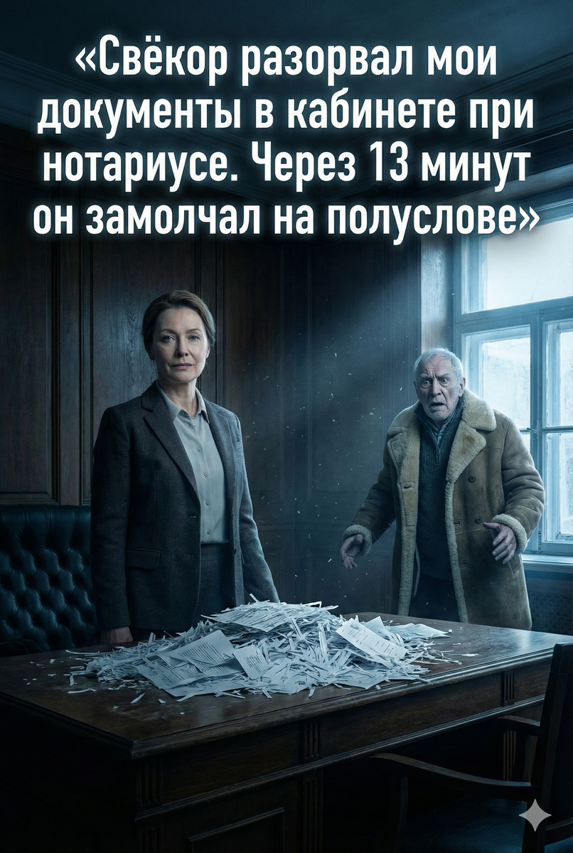 В кабинете повисла тишина. Ровно тринадцать минут свёкор пытался найти выход. Он то орал на Артёма, обвиняя его в том, что тот «не доглядел за бабой», то пытался подкупить нотариуса, то угрожал мне полицией.