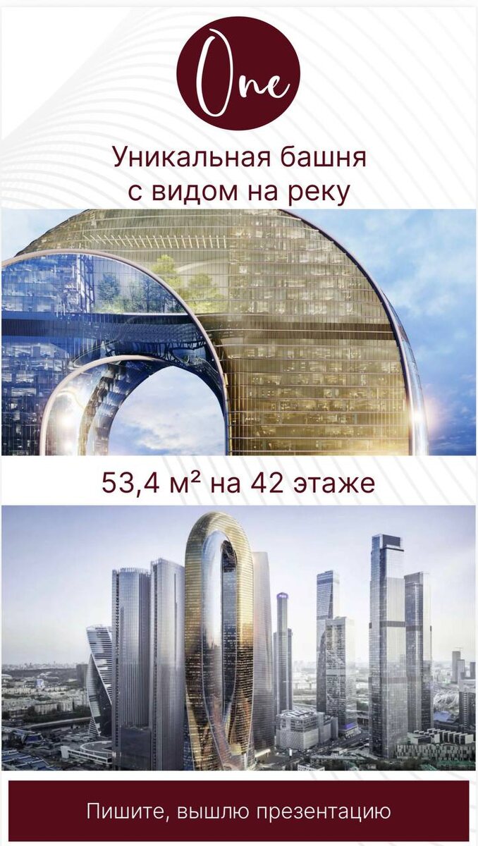 ONE — это 90 этажей и 379 метров высоты в Пресненском районе Москвы, на границе Москва-Сити и нового кластера Сити-2. Проект с мощной архитектурной идеей: две соединённые башни формируют ленту Мёбиуса — символ движения и непрерывности. Архитектурная концепция разработана Сергеем Кузнецовым и бюро Genpro. Монолитная технология строительства, панорамное фасадное остекление, продуманная инженерия и динамическая подсветка фасада, которая меняется в течение дня — от мягкого утреннего свечения до яркого вечернего и ночного режима. Ключевые преимущества проекта • Высота потолков от 3,1 до 3,8 м • Панорамные окна во всех помещениях • Форматы white box и shell&core — можно создать интерьер под себя • Виды на Москва-Сити, центр, сталинские высотки и Москву-реку • Закрытая инфраструктура только для резидентов Инфраструктура — отдельный уровень. — Sky Bridge на 83 этаже — Собственный парк на 85 этаже — Sky Lobby на 35 этаже с фитнесом, кинотеатром, бильярдной, библиотекой, коворкингом и детским