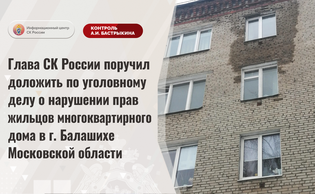 Глава СК России поручил доложить по уголовному делу о нарушении прав жильцов многоквартирного дома в г. Балашихе Московской области