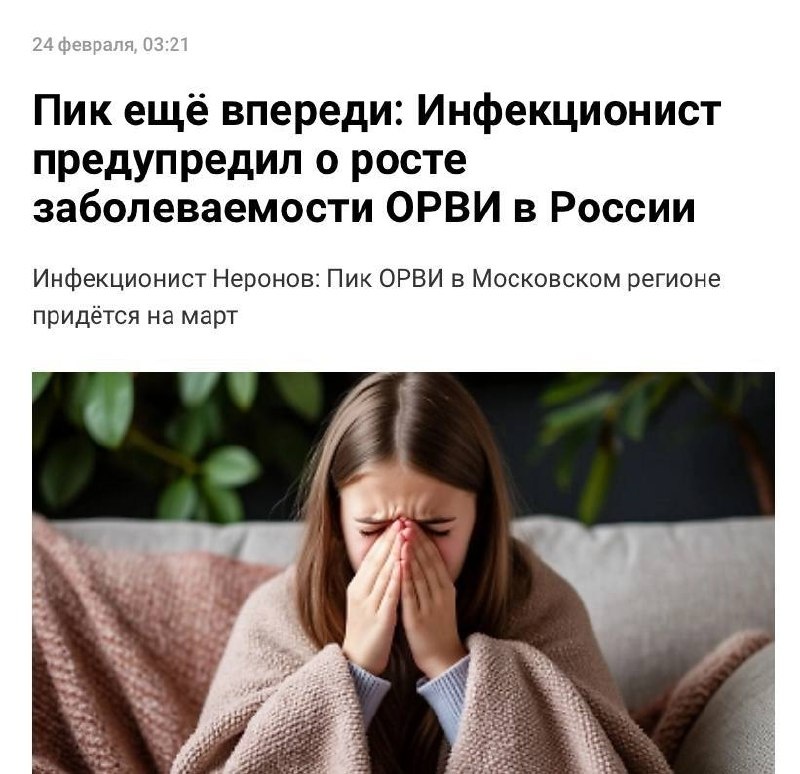 🤧 Эпидемия ОРВИ накроет Россию уже в марте — инфекционисты предупреждают о скором пике сезонной заболеваемости