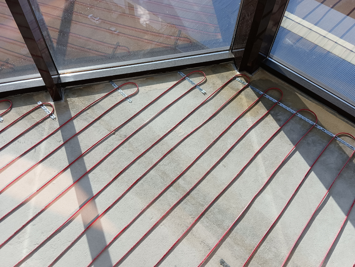 - Нет запаса прочности. Мат в стяжке — это, по сути, тонкий кабель, который легко повредить при укладке тяжёлой плитки на балконе.