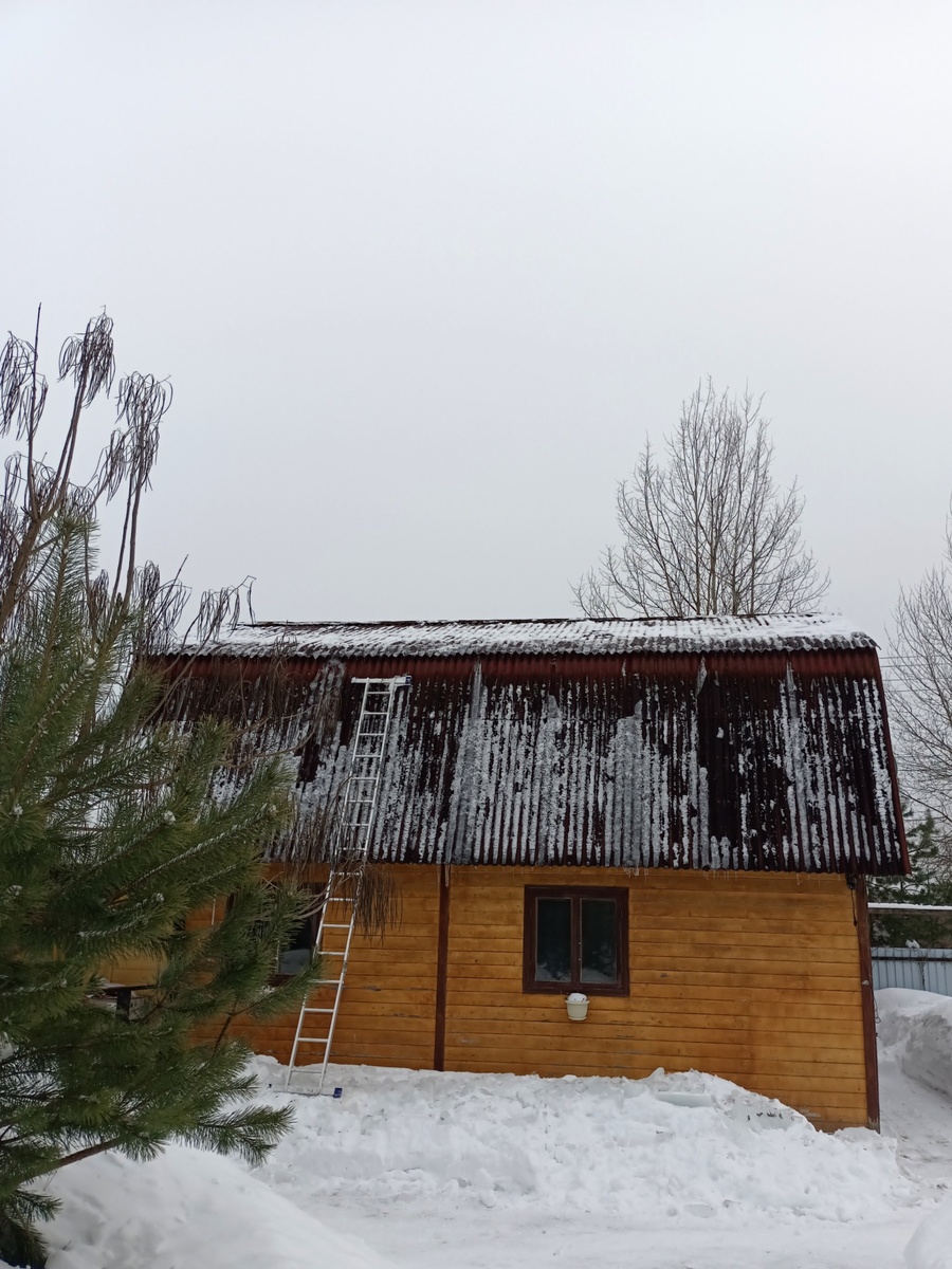 Ещё светло — всё готово. Лёд били с лестницы. Резиновой киянкой. Небольшими кусками откалывали и вниз. На всё ушло, в итоге, часов шесть.