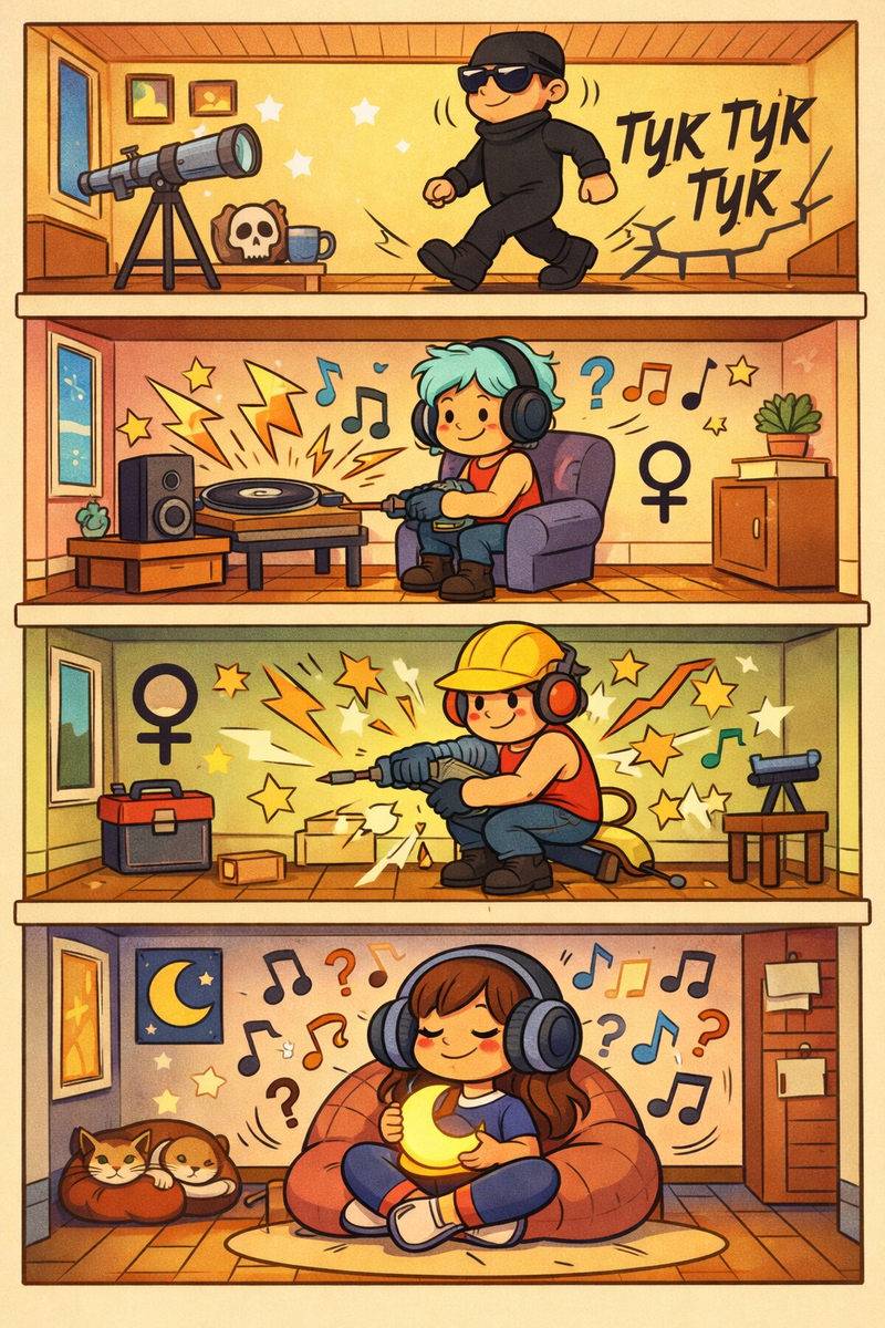 Вы когда-нибудь замечали: одни люди живут в тишине годами, а другие меняют квартиры, но соседи сверху всё равно сверлят, топают и слушают шансон в час ночи? Кажется, что это просто невезение. Или карма. Или плохая звукоизоляция в доме.
