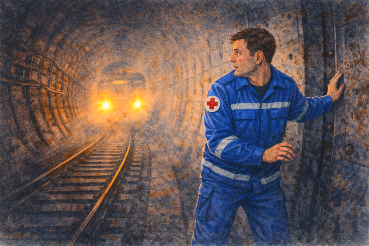 Понять, где именно я нахожусь, никак не получалось, и я осторожно двинулся вперёд, нащупывая путь руками. Затем в памяти всплыли многочисленные репортажи про метро: справа должен тянуться узкий проход — чтобы не топать по шпалам, — а слева располагается контактный рельс.