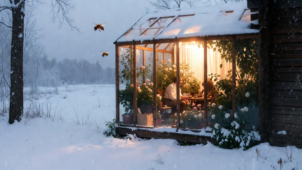 Зима в этом году выдалась суровой. Морозы под сорок стояли почти месяц, и Вышгород утонул в сугробах по самые крыши. Вера сидела в мастерской, глядя на замёрзшее окно, и вдруг поймала себя на мысли, что ей не хватает зелени. Не той, что летом, буйной и яркой, а просто — живого листа, зелёного стебля, цвета жизни среди белого безмолвия. Она поделилась этим с Львом. Тот задумался, потом сказал: «А давай построим оранжерею. Небольшую, пристроенную к дому с южной стороны. Чтобы даже зимой там было тепло и зелено. Я давно хотел, да всё руки не доходили. А теперь — почему бы и нет?» Вера удивилась. Лев, с его любовью к дереву и пчёлам, вдруг заговорил об оранжерее? Это было неожиданно. «Ты серьёзно? Ты же пчеловод, а не садовод.» «Пчеловод, — усмехнулся Лев. — А пчёлам зимой тоже нужна поддержка. Если в оранжерее будут цвести растения, они смогут облетать их, даже когда на улице мороз. Это поможет им пережить зиму. И нам — тоже. Зелени захочется — зайдём, посидим, подышим. Хорошо же.» Вера п