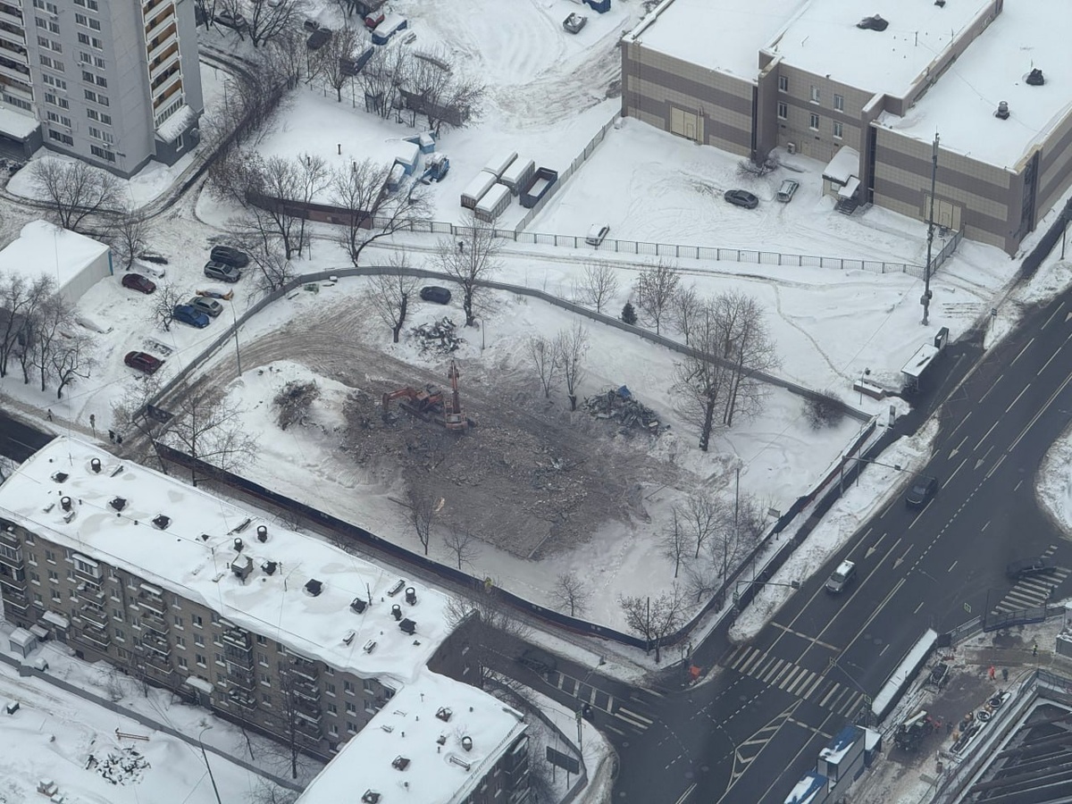 На одной из фотографий, опубликованных сегодня, заметна та зона, где недавно проводился снос пятиэтажного здания, ранее стоявшего на