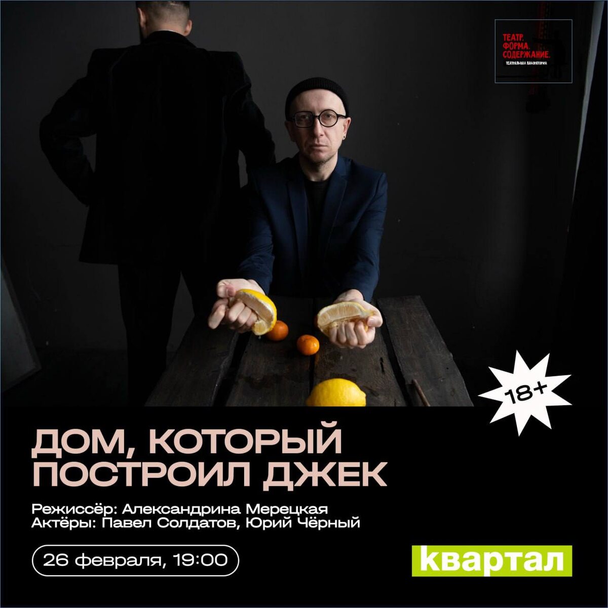 Форма.Содержание. | 18+ 🗓️ 26 февраля, 19.00 📍Квартал, Ленина 78 История одного героя, маленького мальчика, его отца и неслучившегося полёта. Режиссёр: Александрина Мерецкая Актеры: Павел Солдатов и Юрий Чёрный 🏷️ 850₽ - обычный 300₽ - студенческий Билеты у Катерины 🎟️ #26февраля26@culturnik