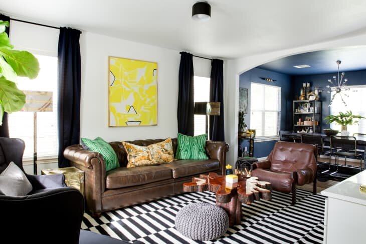 - Слишком контрастная черно-белая полоска может перегружать интерьер.