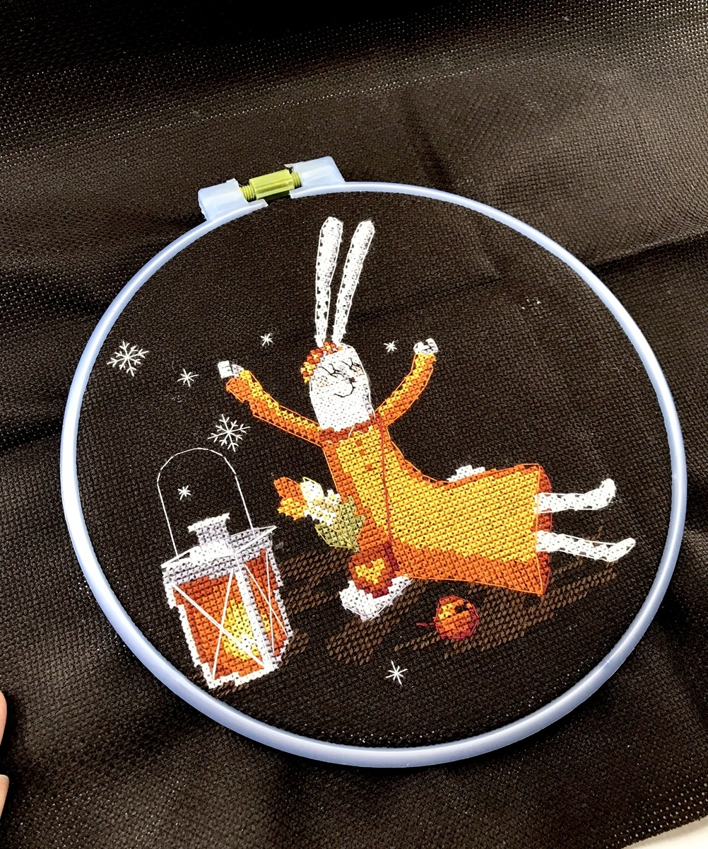 Я даже не поняла, как Нурге заменили их, но очень плавно и целенаправленно это произошло. Наверно, потому, что пяльцы всё таки удобнее. С ними легче запяливать канву.