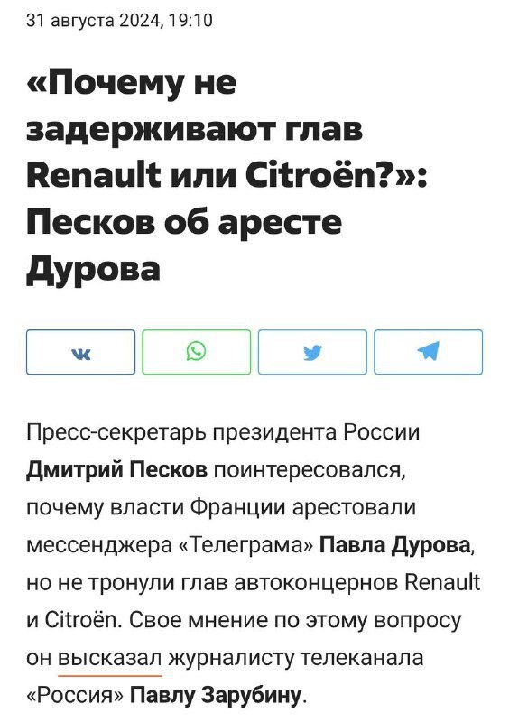 Анекдот из 2024-го: Песков жёстко подколол французов после ареста Дурова — цитата разлетелась мгновенно