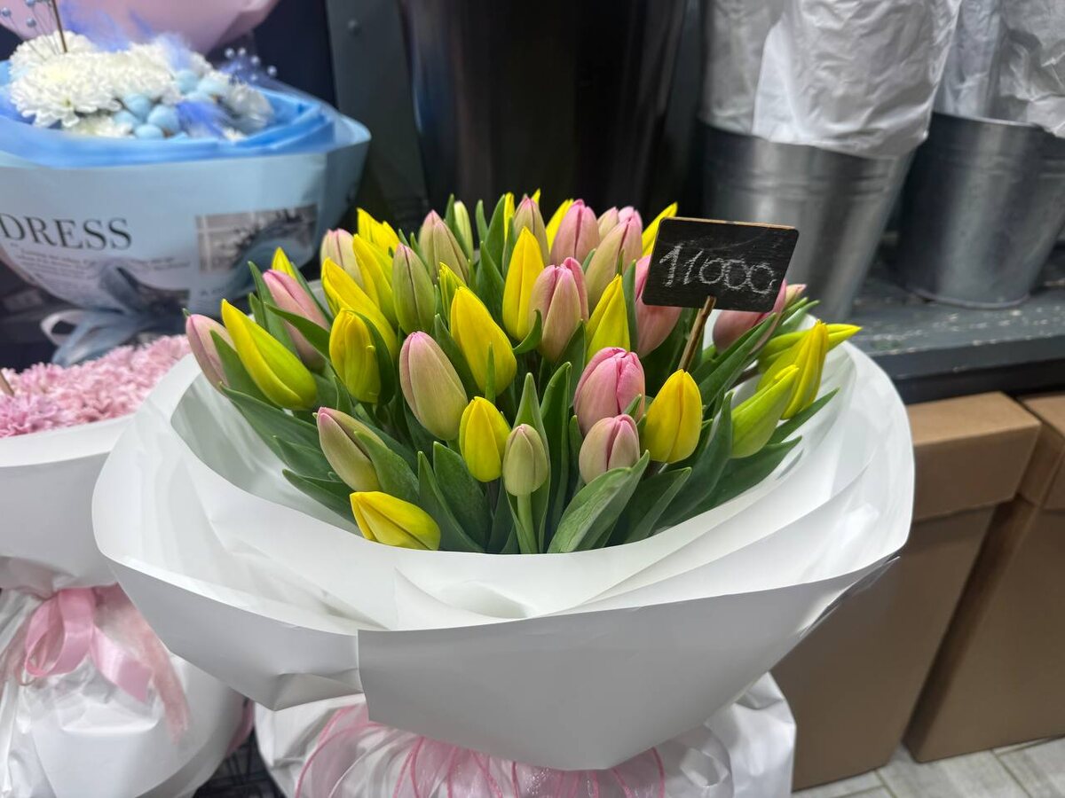 Теперь продавцы просят за букет весенних цветов 11 тысяч рублей. В прошлый раз было 10,5 тысяч рублей. Ценник за одну штуку пока еще держится от 200 до 250 рублей.