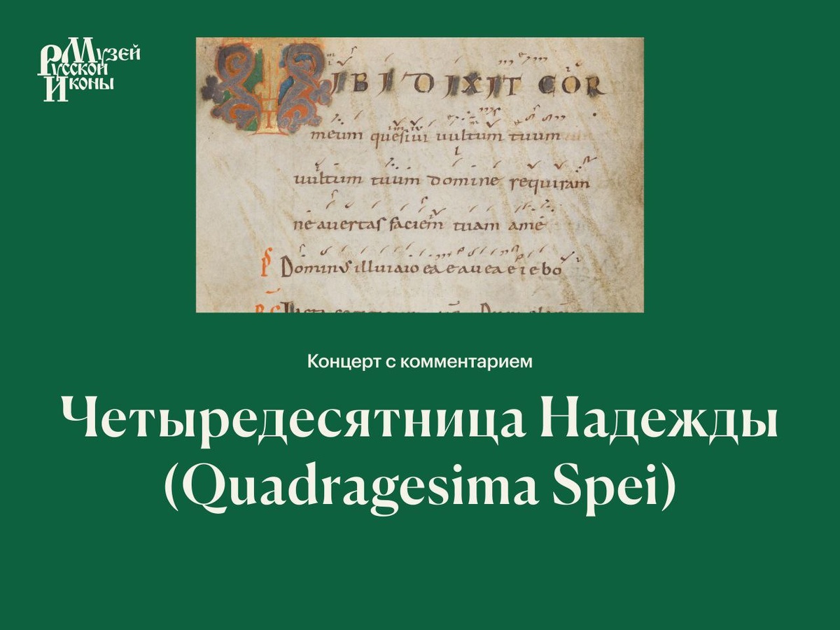 Новый концерт в рамках нашего цикла «Христианские певческие традиции». В программе концерта ансамбля «Невменная схола» (Schola Neumatica) прозвучат григорианские антифоны Великого Поста. Комментарий, а также показ слайдов с манускриптами и переводами латинских текстов поможет слушателям сориентироваться в незнакомом мире григорианского хорала. Великий Пост — время, в которое мы призваны к покаянию, смирению и размышлению о собственных несовершенствах. Особым образом в этот период мы вспоминаем о подвиге Христа, отдавшего жизнь за наше спасение и вечную радость пребывания с Ним. И в этом огромная тайна Поста: с одной стороны, мы замираем в ожидании Великого Страдания, а с другой — с надеждой ожидаем Воскресения и вечной радости. Именно эту двойственность и глубину Четыредесятницы мы и хотим отразить в концертах, которые прозвучат в Музее русской иконы в марте. Первый из них называется «Четыредесятница Надежды» («Quadragesima Spei»). Исполнители — ансамбль «Невменная схола» (Schola N