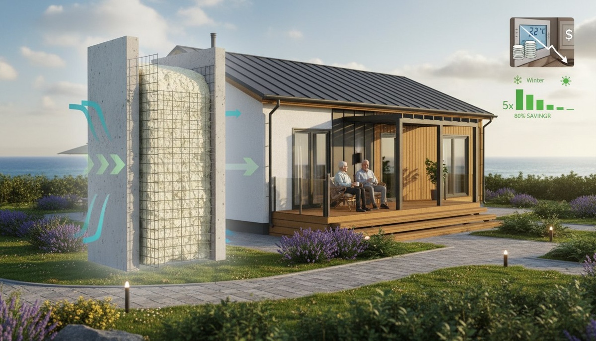 ? 🏠💸 Дом по технологии SCIP — трёхслойные панели: утеплитель внутри, с обеих сторон армирующая сетка и бетон. Получается жёсткая «сэндвич-конструкция» с минимальными теплопотерями. В крымских условиях такой дом тратит на отопление и охлаждение примерно одну пятую затрат обычного кирпичного или газобетонного дома. На практике — меньшие счета зимой, меньше кондиционирования летом, нет сквозняков и резких перепадов: дом работает как тёплый термос. Для людей на пенсии стабильность температуры важнее нескольких градусов — и это реальная экономия при любых скачках тарифов. 🔥 Хотите пример расчёта для вашего участка? Напишите в комментариях или в Директ — расскажем конкретно.