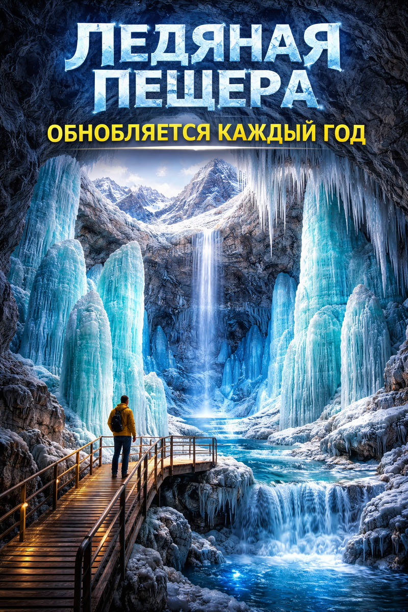 Главный “строитель” ледяной пещеры — это вода. Она просачивается через трещины в породе, собирается в капли и медленно замерзает. За зиму нарастают новые слои. Лёд может формировать арки, колонны и даже ледяные водопады. Каждый сезон создаёт новую геометрию пространства. Пещера превращается в лабораторию естественной кристаллизации.