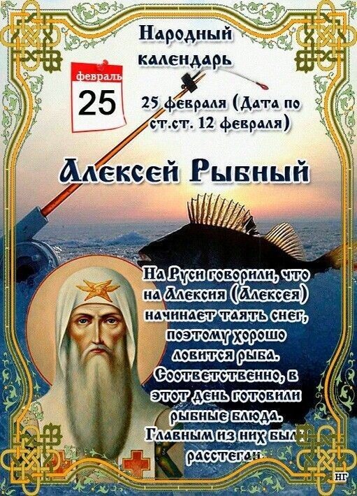 25 февраля в народном календаре — это Алексеев день, также известный как Алексей Рыбный . Этот день был богат на традиции, связанные с подготовкой к весне и рыбалкой, и оброс множеством примет и поверий.