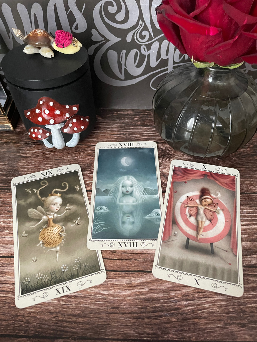 Продолжаю анализ колоды Nicoletta Ceccoli своим ретро-методом: когда карты не могут соврать Напоминаю суть метода: я настраиваюсь на уже прожитый день. События случились, чувства зафиксированы, картам некуда деться, они обязаны отразить реальность. Вчерашний триплет «Событие - Я в этих событиях - Итог для меня» выдал поразительную глубину. Разбираем детали. 1. Событие дня: Аркан Солнце ☀️ По классике это ясность, но у Чекколи всё глубже. На карте девочка-улей. Она парит, её платье дом для пчел, а они приносят туда мед. Это создание гармоничного мира, где ты становишься домом для кого-то, а они взамен наполняют твой дом. Это идеальный баланс «брать-давать», где нет страдания и чувства, что тебя используют. Ты источник счастья, ты освещаешь путь, и твоя жизнь от этого тоже становится солнечной. Как отыгралось: Принятие решения помочь близким, создание условий, где всем хорошо. Чистый взаимообмен без жертвенности (как казалось в моменте). 2. Я в этом событии: Аркан Луна 🌙 Здесь Лу