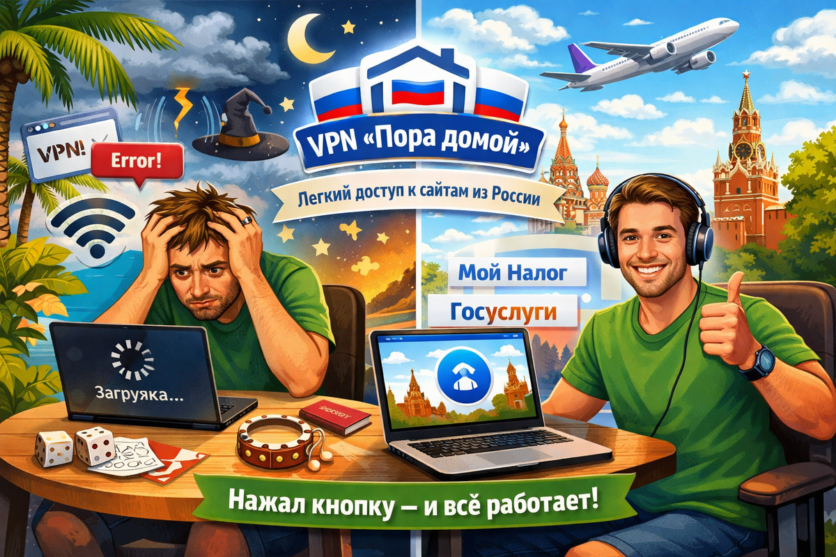 Привет! У меня есть бизнес в России, и, как законопослушный человек)), мне стабильно приходится заносить данные и выбивать чеки через сайт «Мой налог» lknpd.nalog.ru Всё бы ничего, но я живу за границей. И доступ к этому сайту отсюда — это какое-то настоящее чудо. По моим личным ощущениям, его работа зависит исключительно от погоды в Москве, ретроградного Меркурия или фазы луны. Иногда ты заходишь, и всё грузится с первого раза. А иногда — бесконечный белый экран загрузки. Ты просто сидишь, смотришь на него и думаешь: «Я же просто хочу отдать государству свои налоги, почему это так сложно?». Сначала я пытался выкручиваться: искал какие-то бесплатные VPN, перебирал серверы. Но это постоянная лотерея. Сегодня работает, а завтра IP-адрес уже в блоке, и ты снова танцуешь с бубном, теряя время. В какой-то момент мне окончательно надоело тратить на это нервы. Я решил больше не париться и запустил для себя и таких же страдальцев сервис с говорящим названием «Пора домой». Это *PN с чистыми рос