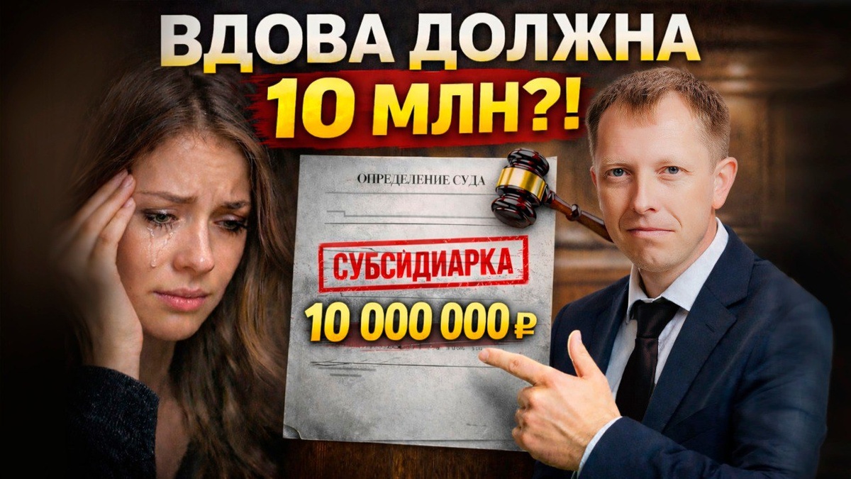 Привет, дорогие друзья. Сегодняшний выпуск о ситуации, где человеческая трагедия внезапно переходит в юридическую плоскость. К нам обратилась девушка, которая переживала тяжёлую утрату — похоронила мужа. Ей нужно было не только пережить эту боль, но и удержать семью: двое детей остались у неё на руках. Через какое-то время она получает письмо из суда. Суд привлёк её и покойного супруга к субсидиарной ответственности по долгам компании мужа на сумму более 10 млн рублей. При этом она жила обычной семейной жизнью и не вмешивалась в бизнес мужа: не управляла компанией, не вникала в отчёты, не общалась с контрагентами. А потом увидела в суде, что её считают причастной к банкротству компании покойного мужа. В этом выпуске я расскажу реальную историю нашей клиентки, которая оказалась в такой ситуации. Разберём, как нам удалось полностью снять с неё и с её покойного мужа долг более 10 млн рублей в апелляции. Когда клиент впервые пришла ко мне на консультацию, я понял, что это не просто дело с