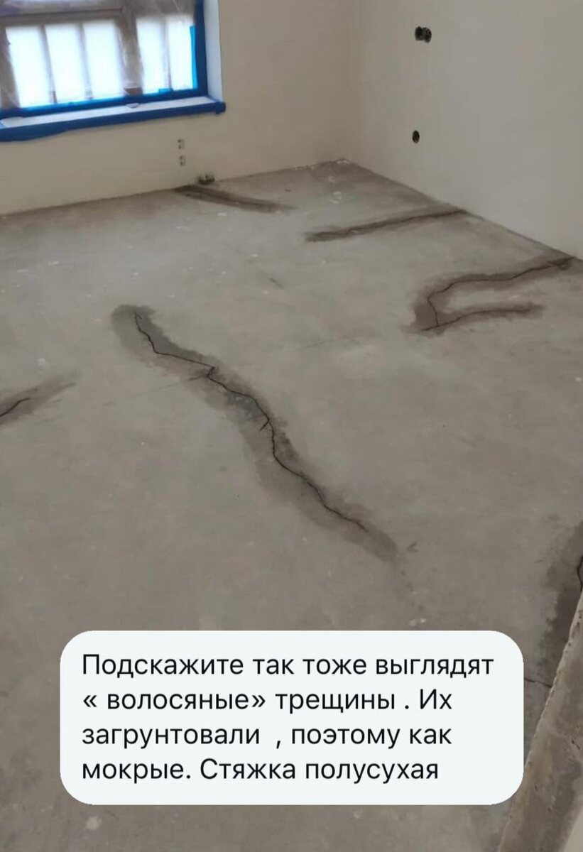 И все таки, ошибка ЭТО👆🏻 или нет? Давайте разбираться по пунктам. ✔️ Визуально стяжка должна быть ровной — без ям и бугров. И однородного цвета. ✔️ Стяжка не должна крошиться. ✔️ Угол между стяжкой и стеной должен быть 90 градусов. Везде! И обязательно демпферная лента по периметру. ✔️ Технические разрывы - каждые 6м, на дверных проемах, на порталах и Т-образные разрезы на внешних углах. ✔️ При наличии шумоизоляции стык между стяжкой и стеной должен быть пройден звукоизоляционным силиконовым герметиком. А что же по трещинам? ❗️Тонкие “волосяные” трещины на стяжке — это не обязательно ошибка! Ваша задача проверить, нет ли в этих местах пустот — для этого необходимо стяжку «простучать». Конечно, на фото👆🏻 не волосяные трещины. НО! если при простукивании стяжки в местах трещин нет глухого звука, т.е стяжка не бухтит, то можно эти трещины отремонтировать. Расшить, прогрунтовать и залить жидким плиточным клеем, а сверху залить наливным полом. Сохранили себе? Какие процессы проверяем