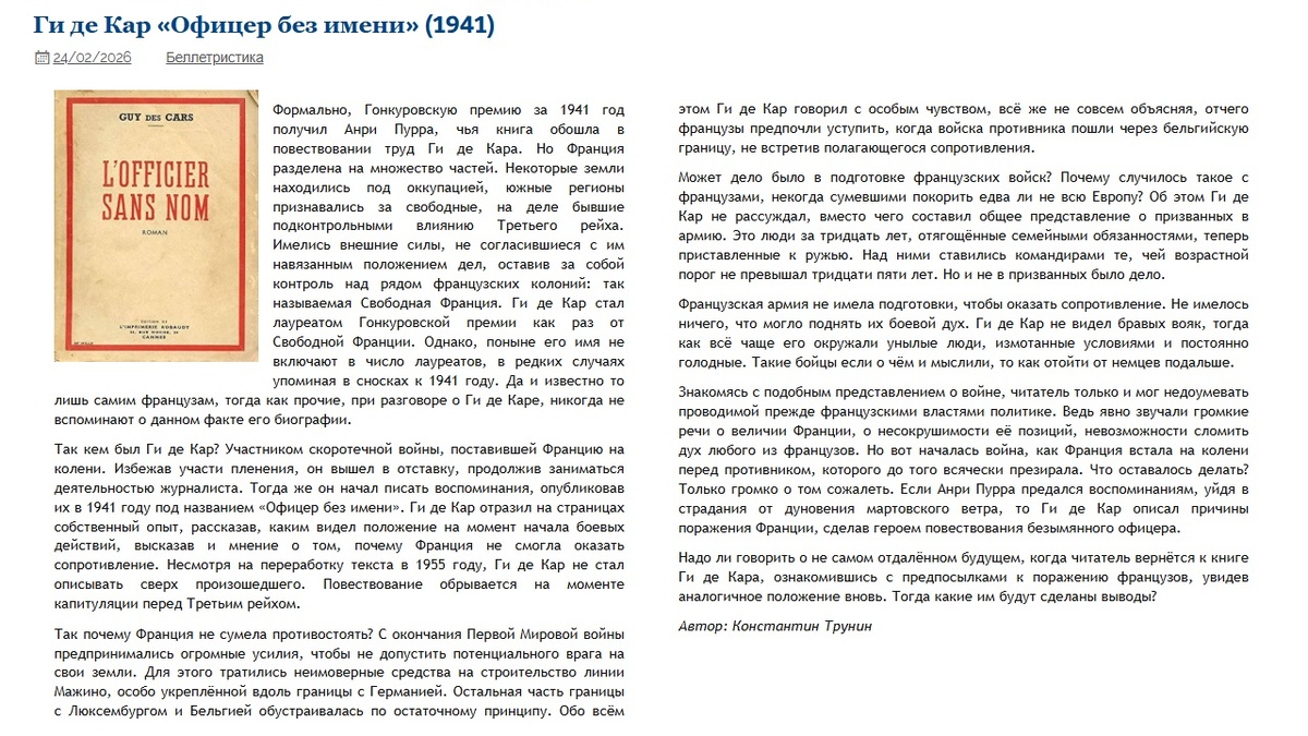 Ги де Кар «Офицер без имени» (1941) | Критика