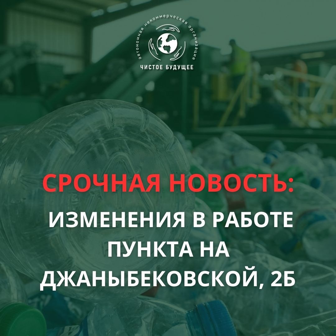 Пункт приема по адресу ул. Джаныбековская, 2б не будет работать в ближайшие две недели. К сожалению, наш прессовщик серьезно заболел и госпитализирован. Как сдать вторсырье в этот период? Чтобы ваши накопления не занимали место дома, вы можете: 1. Воспользоваться услугами нашего «ЭкоТакси» (закажите вывоз, и мы приедем сами). 2. Самостоятельно отвезти вторсырье в «Экопункт GRASS», который находится в ЦПКиО. Приносим извинения за неудобства и благодарим за понимание. Нашему коллеге желаем скорейшего выздоровления! 🙏