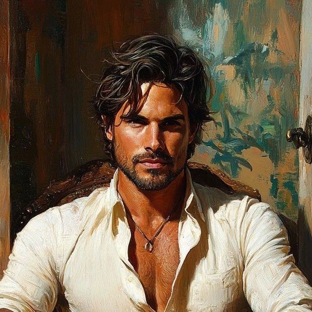 Нина, пожалуй, впервые за свою жизнь почувствовала столь искренний интерес к себе. Она стряхнула с себя сковавший её было страх, отошла от двери, щёлкнула выключателем. Над головой загорелась тусклая лампочка, освещая немудрёную обстановку прихожей. Из большого старого зеркала на неё, улыбаясь, смотрел красивый молодой мужчина. У него были выразительные карие глаза под густыми бровями, прямой нос, слегка выдающийся вперёд подбородок с лёгкой щетиной. Волосы, густые и волнистые, некоторые пряди с небрежной элегантностью спадают на лоб. Воротник и несколько верхних пуговиц лёгкой белой рубашки расстёгнуты, что позволяет рассмотреть подтянутую грудь.