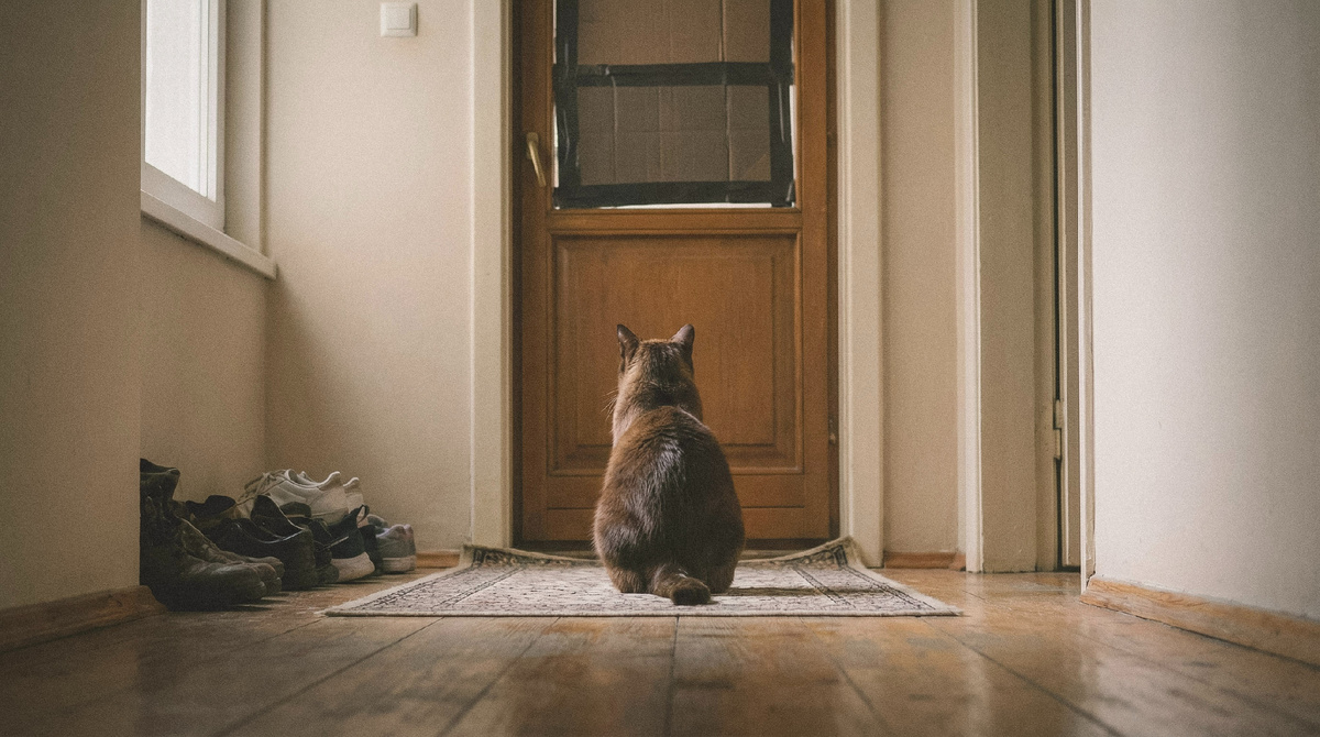 Кот посмотрел на неё, потом снова на дверь. Фыркнул и ушёл в комнату.