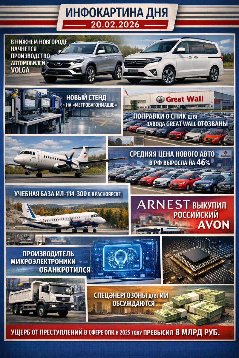 4 млрд ₽ — инвестиции в новое фармацевтическое производство. Средняя цена нового автомобиля за четыре года выросла почти на половину. Рынок продолжает перестраиваться: усиливается доля локализованных производств и азиатских брендов, а потребитель всё чаще выбирает более доступные комплектации. 4 млрд ₽ направлены на запуск нового фармпроизводства. Тренд на импортозамещение и технологическую независимость сохраняется. Объём интернет-торговли достиг 11,5 трлн ₽ по итогам 2025 года. Рынок продолжает расти за счёт регионов, маркетплейсов и логистической инфраст