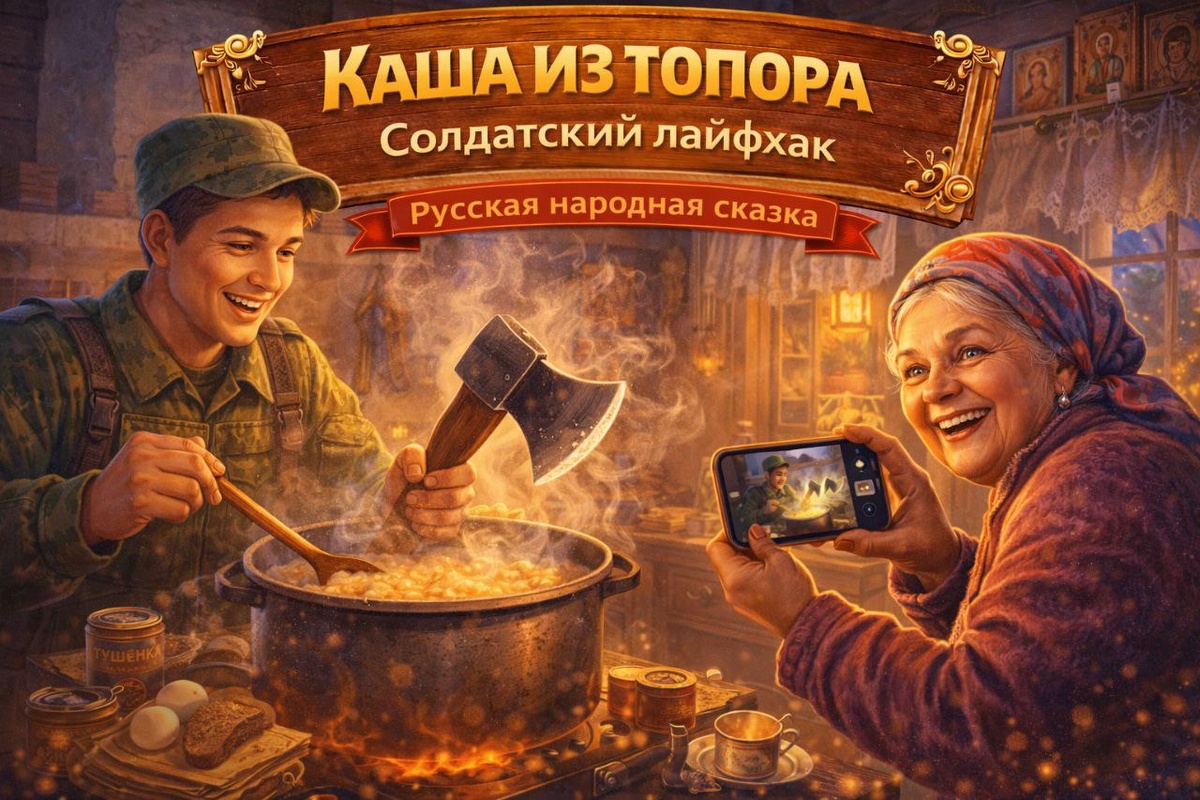 Она сняла видео, как Петров вынимает топор из кастрюли, как разливает кашу по тарелкам, как они садятся за стол. Потом сделала селфи с тарелкой и подписью: «Угадайте, из чего сварено? Подсказка: это не просто каша, это армейский рецепт!»