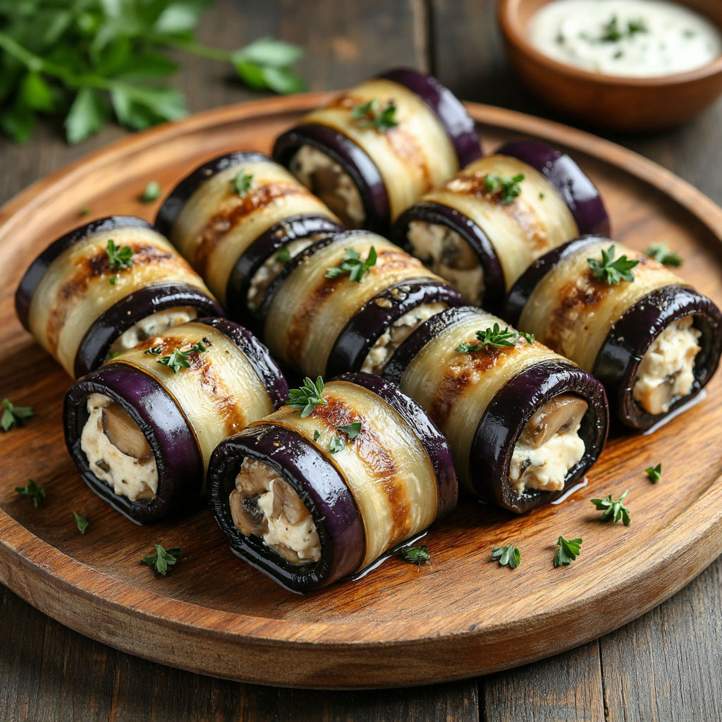 Рулетики из баклажан с грибами, сыром и чесноком — это не только вкусное, но и полезное блюдо, которое можно подать как в качестве закуски, так и основного блюда. Комбинация баклажанов, грибов, сыра и чеснока создаёт гармоничное сочетание вкусов, а сама готовка предоставляет возможность проявить кулинарные таланты. В этом рецепте мы подробно разберём, как приготовить эти рулетики, чтобы они стали настоящим украшением вашего стола.