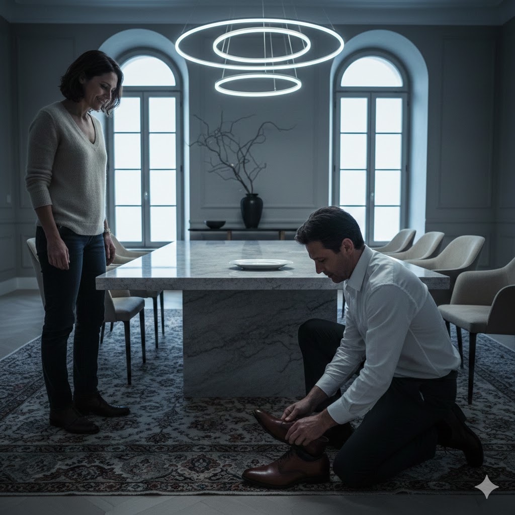 Елена подошла к дверям кухни и оперлась о косяк. Она смотрела не на него, а вниз. Туда, где начищенные носки его туфель ловили свет галогеновых ламп под потолком.